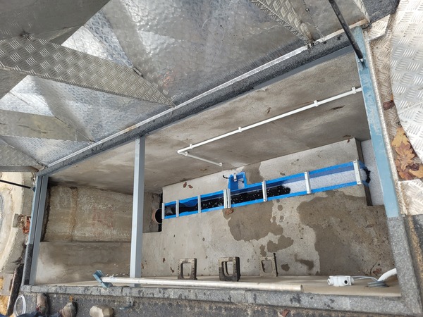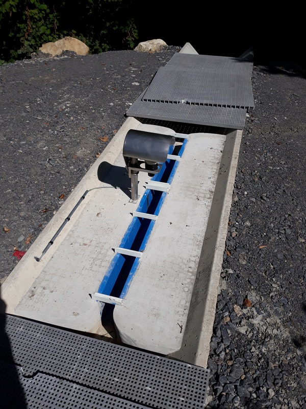 Controle des rejets d'eaux usées : Canal avec puits de mesure monté dans une plasturgie