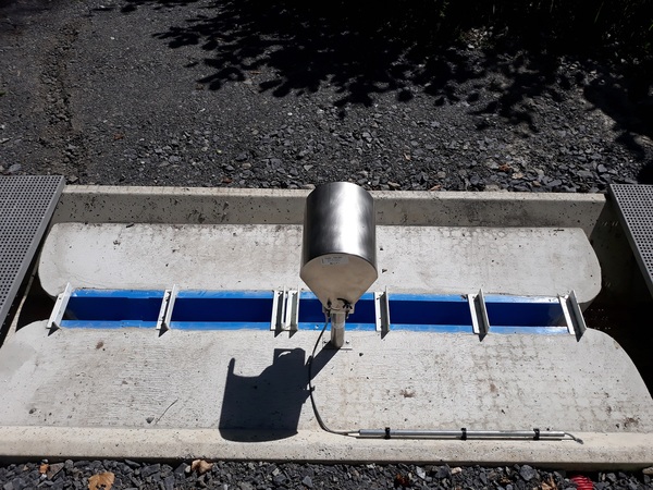 Dispositif d’autosurveillance des rejets d’eaux usées, intégrant un canal Venturi scellé dans le béton et une chaîne de mesure de débit par sonde à ultrasons BAMOSONIC. L’ensemble est complété par un capot de protection (fourniture BAMO) assurant la protection des équipements électroniques contre les rayonnements UV et les agressions extérieures.
